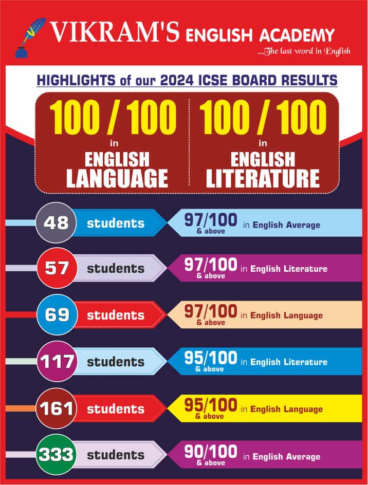 With Vikram’s English Academy, master ICSE English with Creativity, Clarity, and Confidence – the pillars of effective communication that inspire innovation, ensure precision and empower impactful expression.